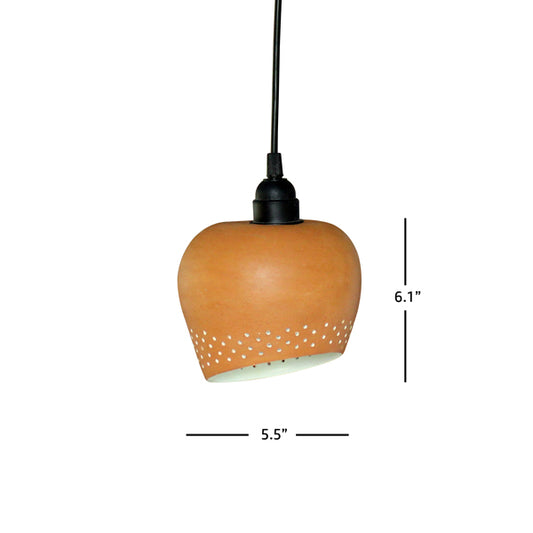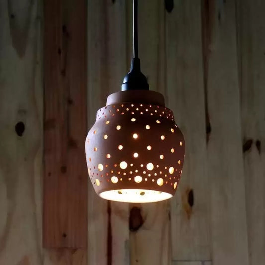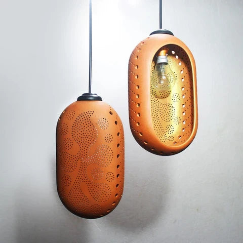 Add sculptural elegance to your interiors with the Cazul Terracotta Hanging Light, a handcrafted pendant inspired by the sleek form of a capsule. Made from burned clay (terracotta), this designer lampshade features a bold side cut-out that partially reveals the bulb, while the opposite side is detailed with abstract perforations...