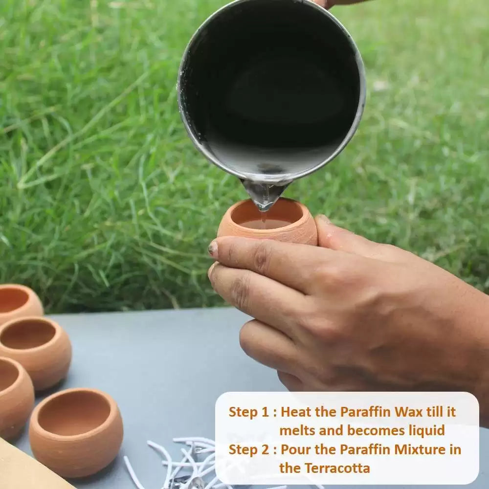 Each terracotta candle pot is handmade by skilled potters and women artisans of India, making every piece unique. Once the wax solidifies, your handmade candles are ready to light up your home, festive décor, or special occasions.